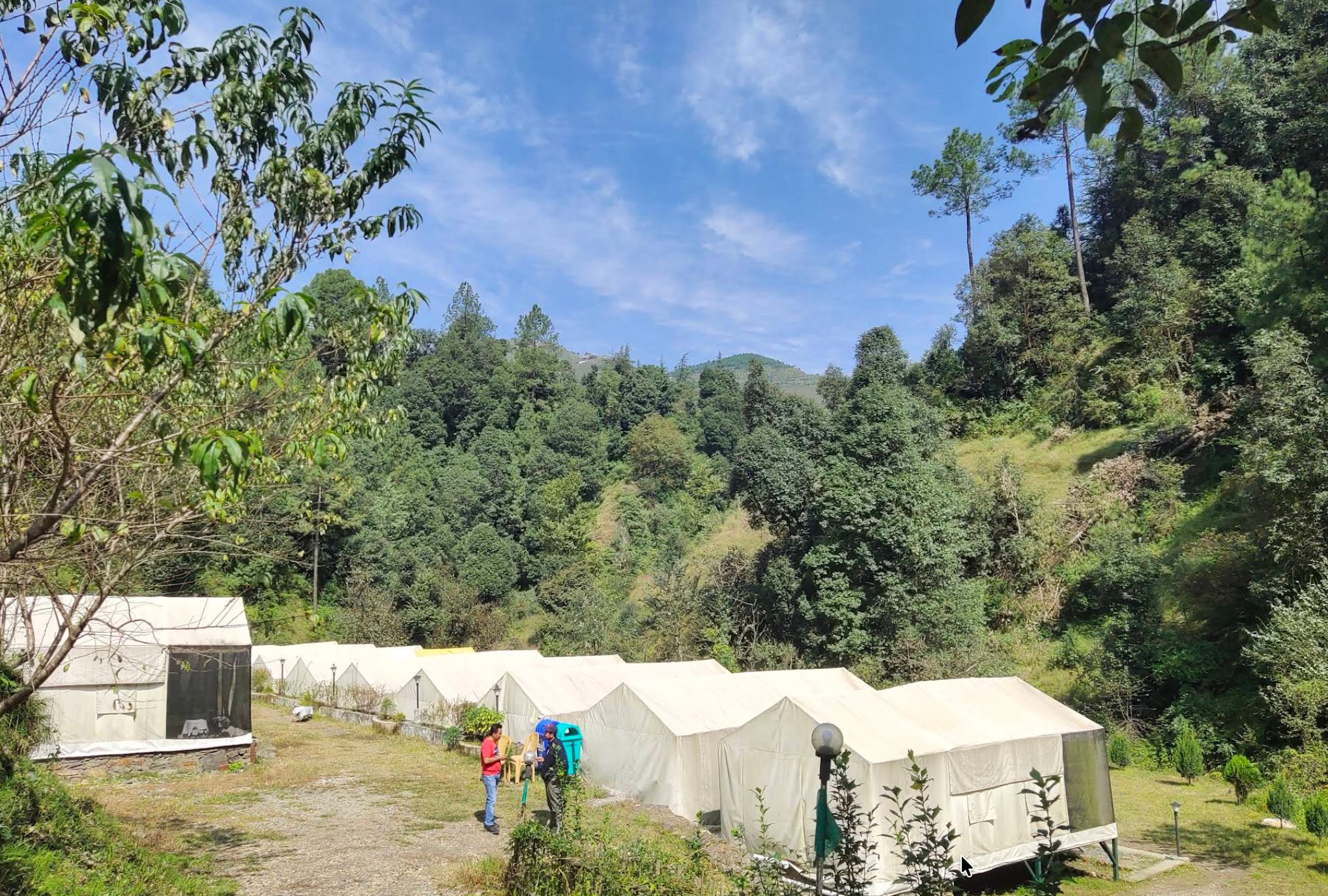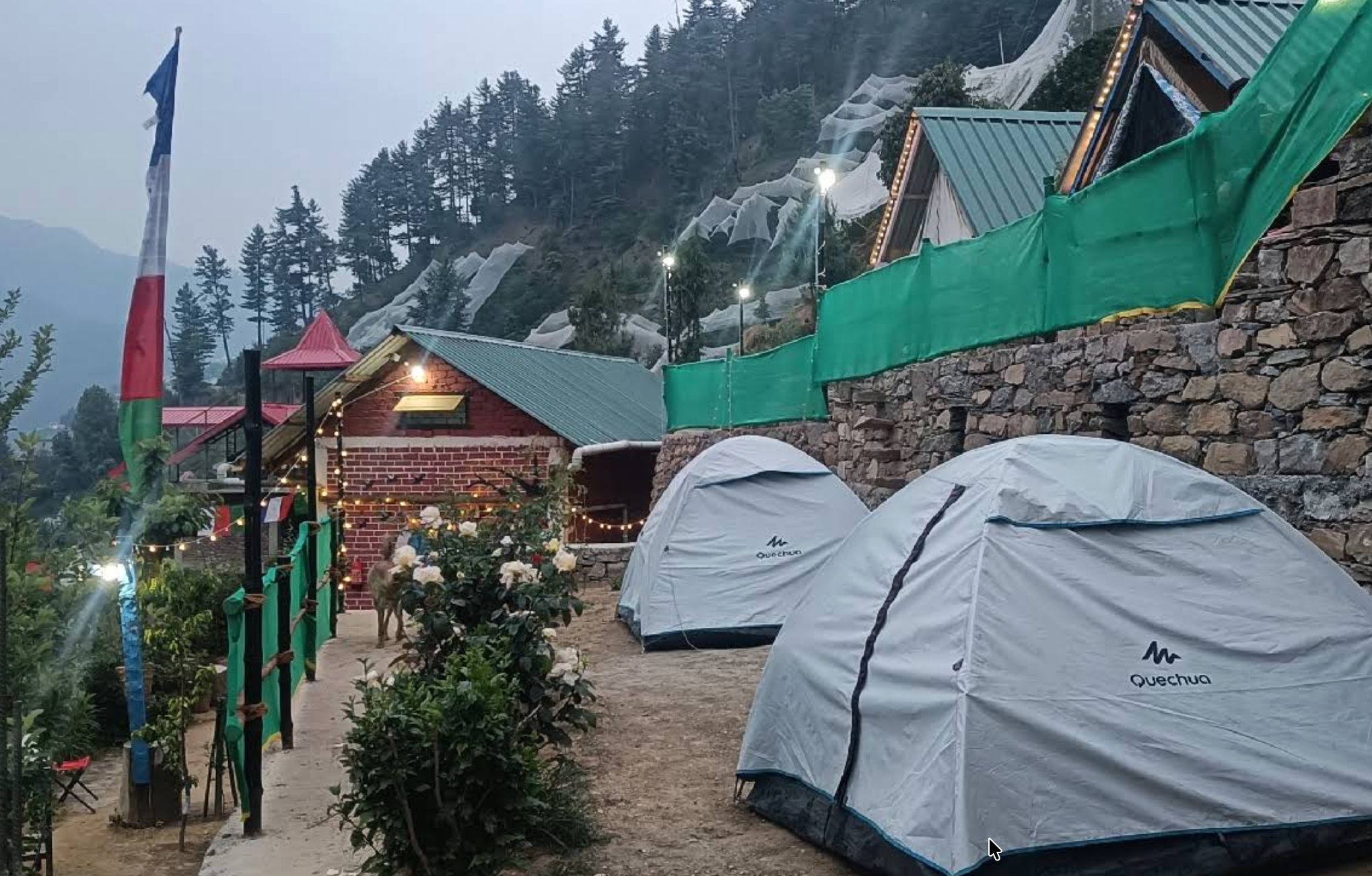Mix of Swiss tents and cottages accommodates different comfort preferences. Common areas work well for group gatherings, and the elevation means genuinely cool temperatures.